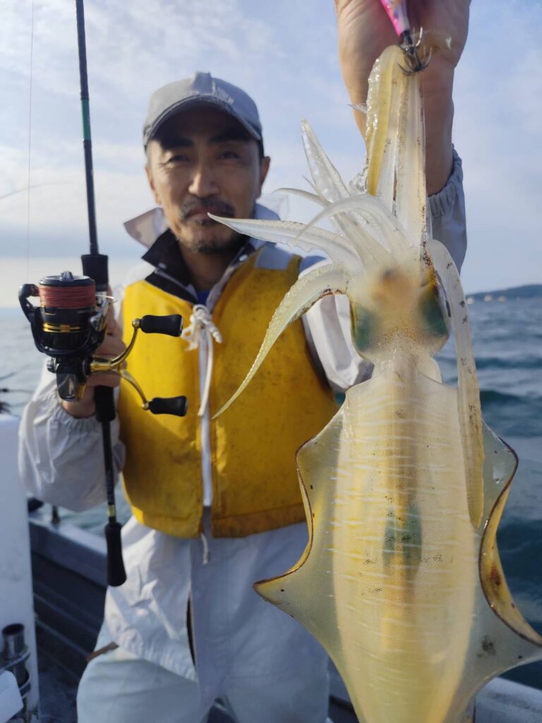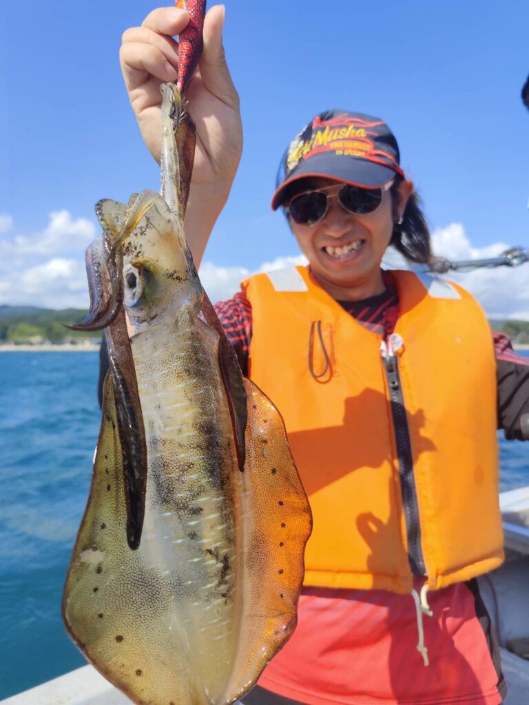 数は釣れませんでしたが、初心者の方も全員釣れてくれたのと、釣れた7割は同20㎝オーバーで最大750gとイカの重たい引きを楽しんで頂けたようで良かったです!!(^^)!