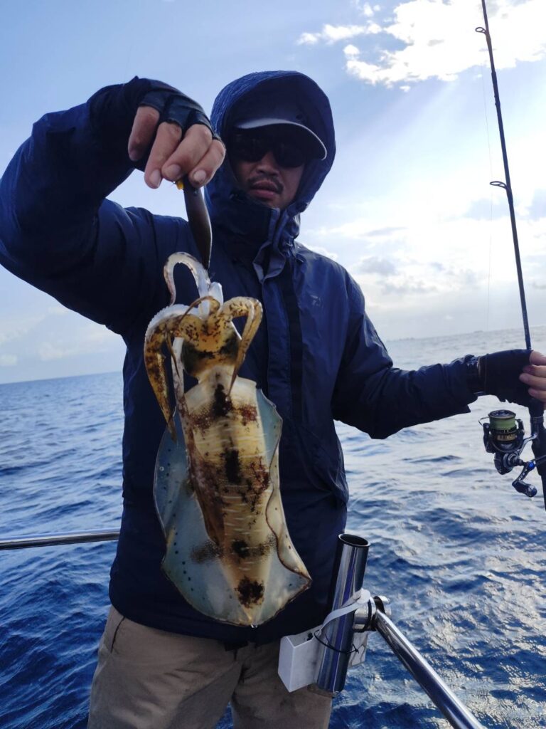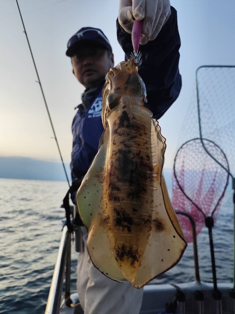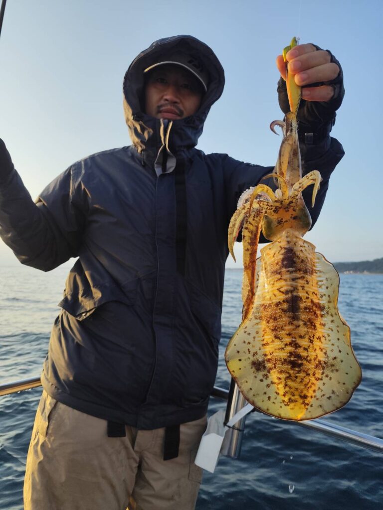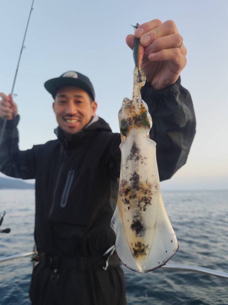 船の流れは遅いですが、イカが釣れる!