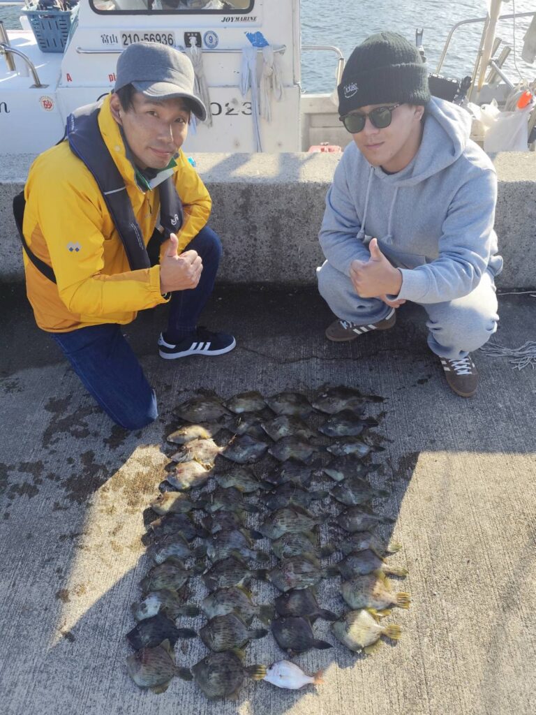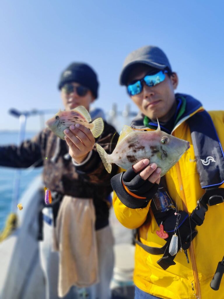 カワハギ釣り初めて親子は、コツを掴めば連荘!