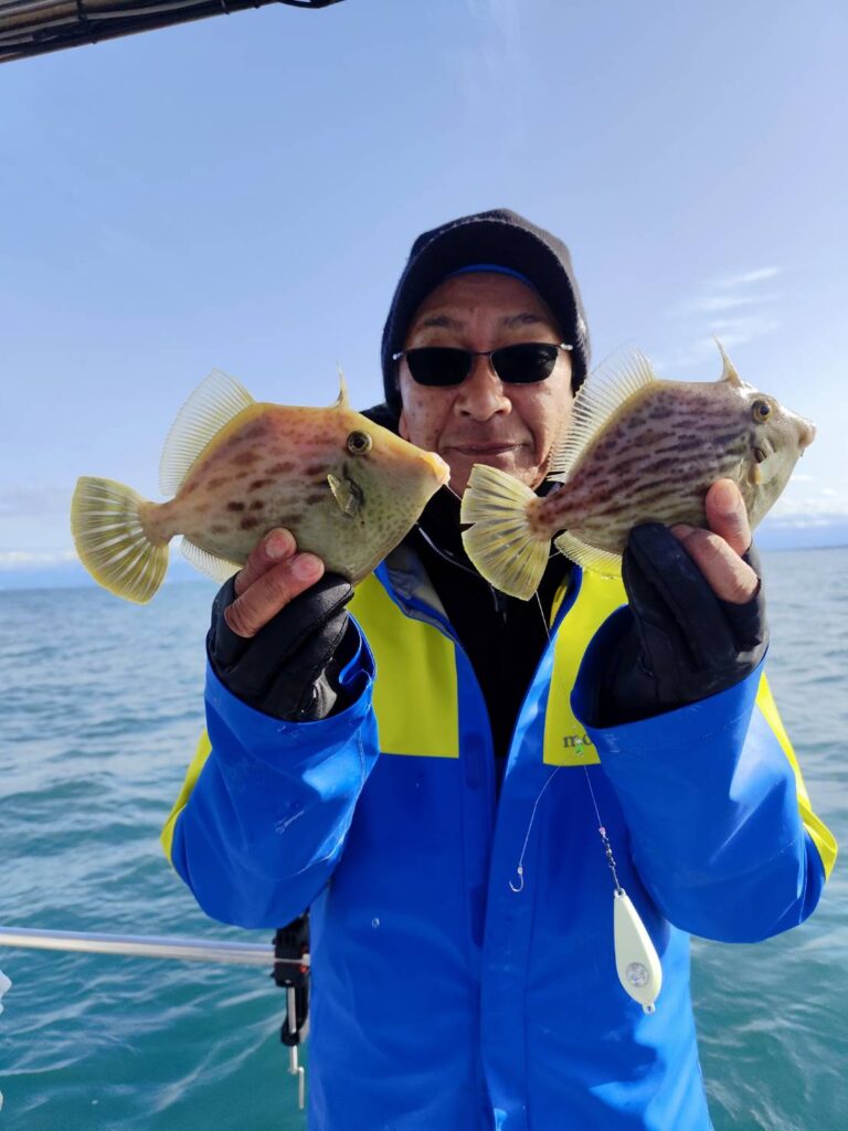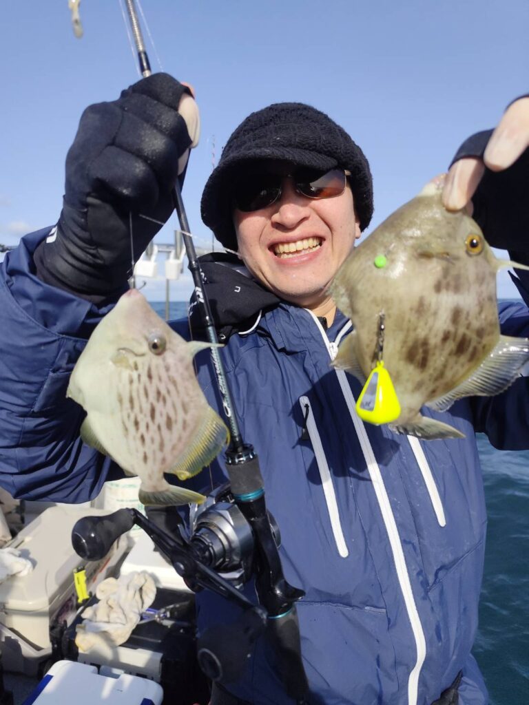 今回はお二人が前回の乗船でカワハギにハマって頂き、お一人瞬鋭、もう一人極鋭を購入いただき参戦‼(^^♪