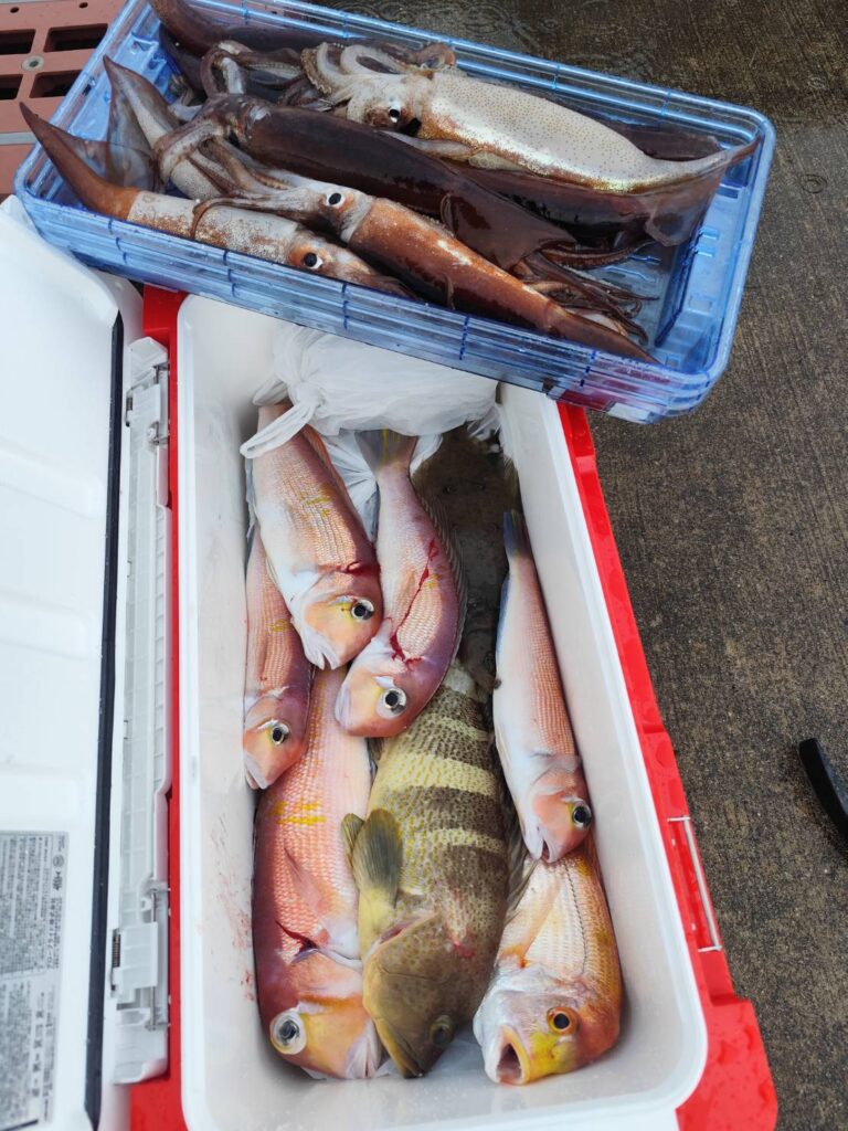 その後も鰈、甘鯛、カサゴ、エソなども釣れ、目標5匹の甘鯛も達成できました。
